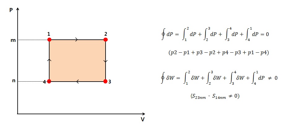 3)다음 그림은 1->2->3->4->1 사이클에서 점함수와 경로함수의 사이클 적분값을 표시한 것이다