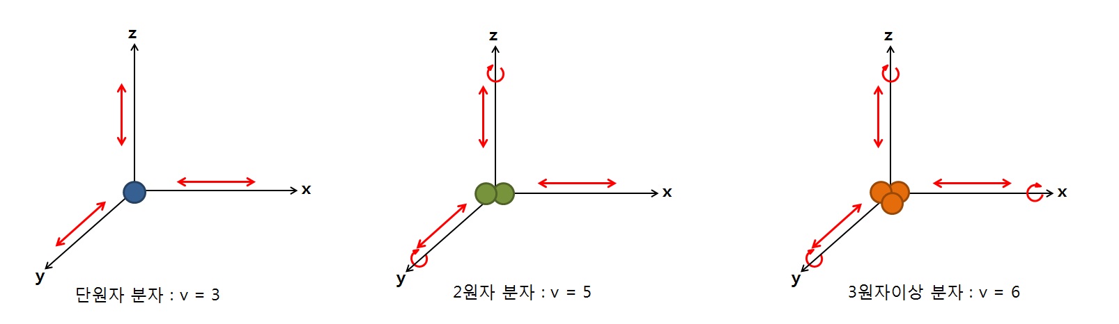 2)단원자분자 : 헬륨/네온/아르곤 등의 단원자분자 => 유효한 운동은 (x,y,z축의 병진)운동, v=3