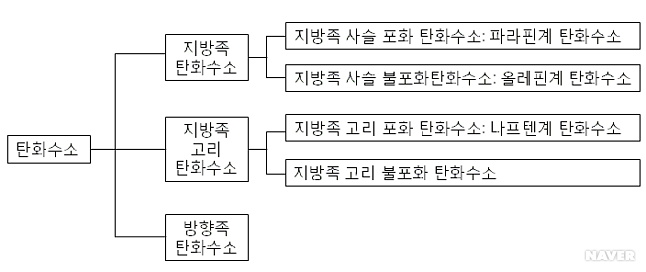 2)파라핀계, 올레핀계, 나프텐계, 지방족고리불포화, 방향족 탄화수소가 있다